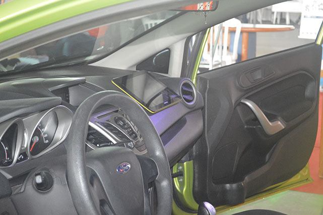 Interior do veículo com o módulo de navegação e gerenciamento do veículo